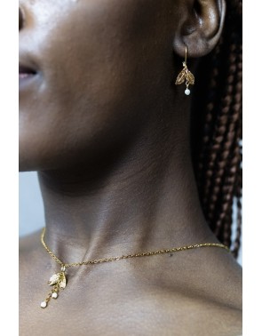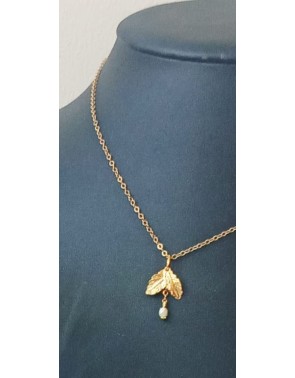 Le collier assorti a une petite feuille et une mini perle. Il y a deux niveau d'attache.