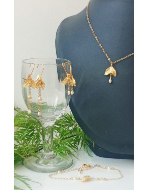 Parure 3 pièces "Petite Feuille": Boucles courtes, Bracelet & Collier