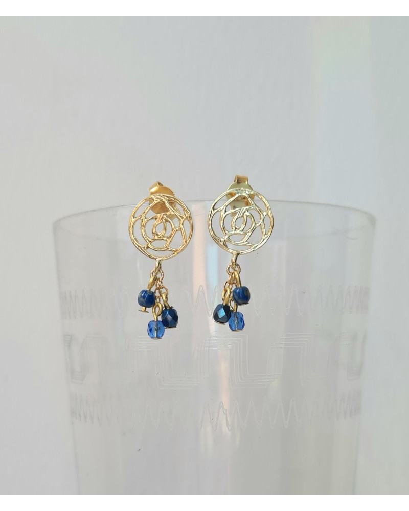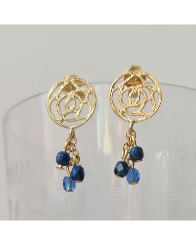 La puce d'oreille est travaillée sous la forme d'une fleur, découpe vitrail.