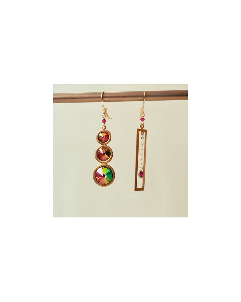 Perles kaléidoscopes en verre avec un mélange de tons changeant, du rouge au vert.