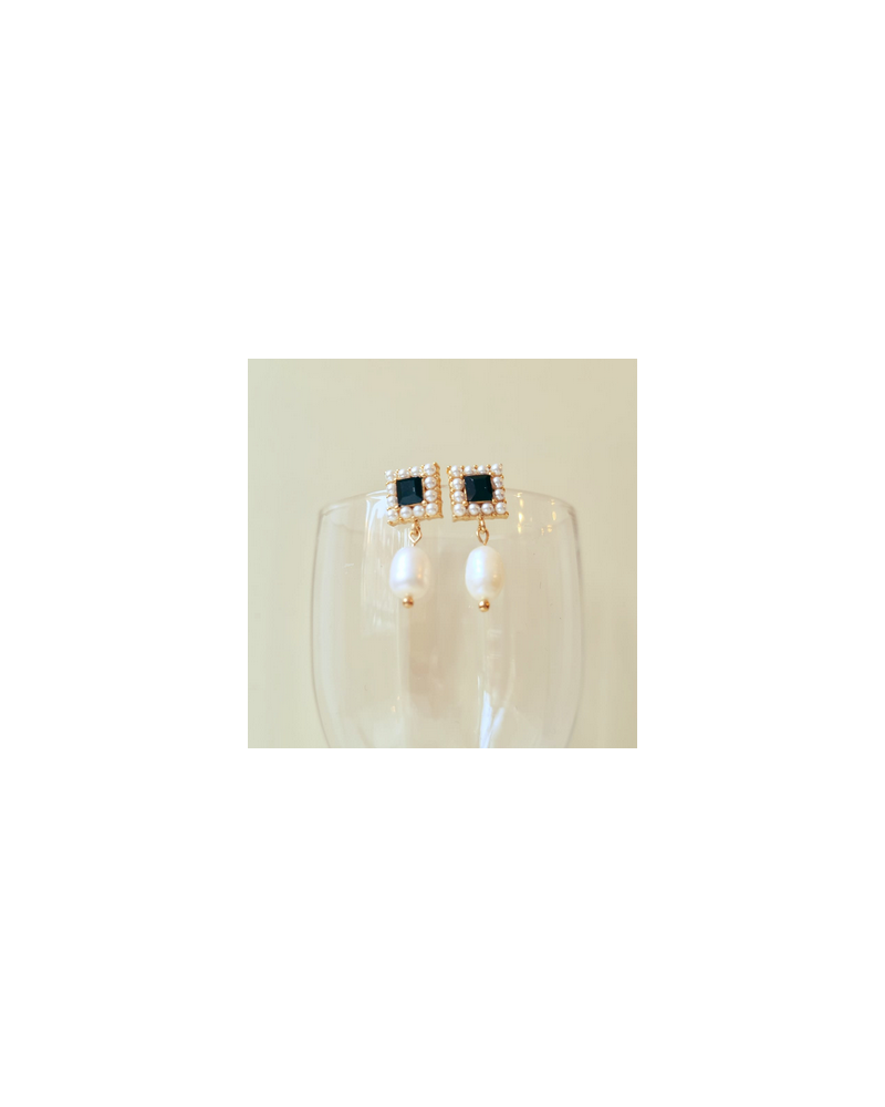 Carré Renaissance Noir-Perle de culture