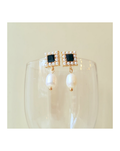 Parure Carré Renaissance Noir-Perles de Culture