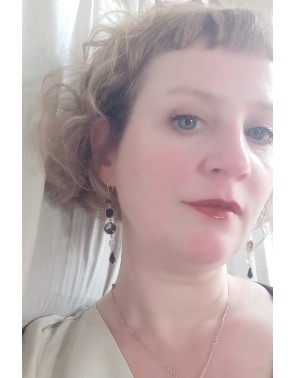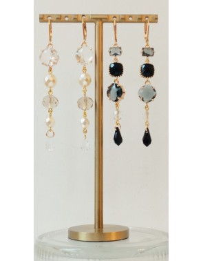 Les perles aux tons Noirs sont terminées par une goutte en Crystal noir Jet.