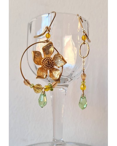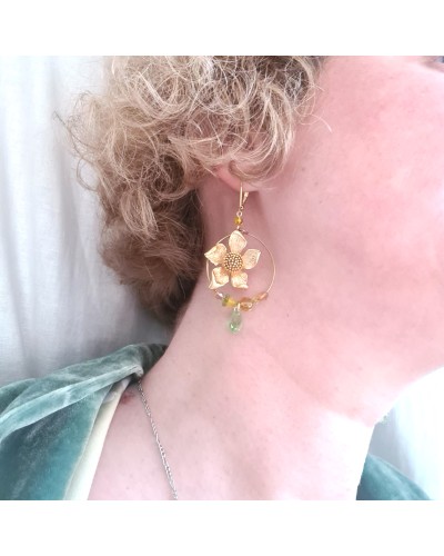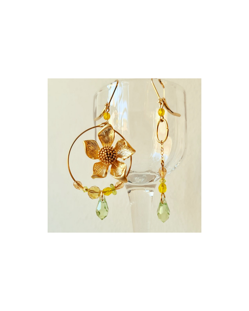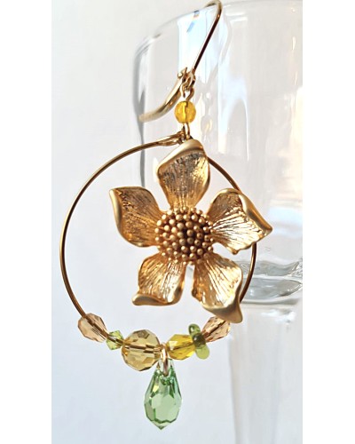 Fleur en laiton plaqué Or, couleur Or brossé mat.