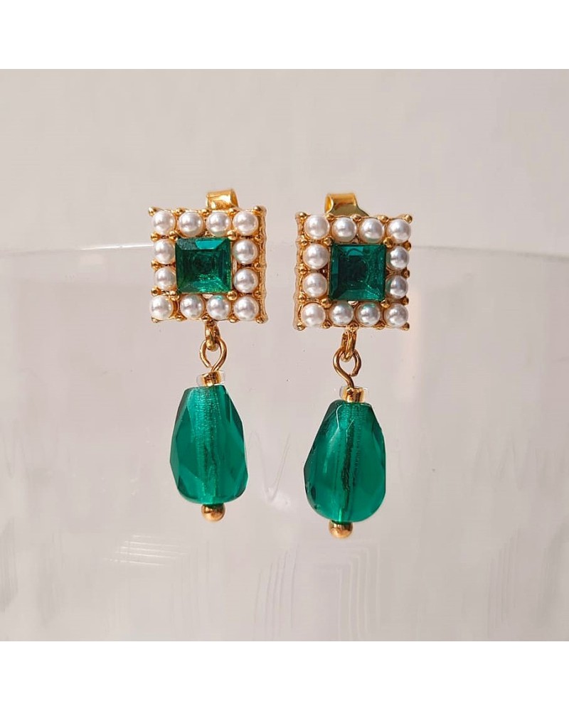 Boucles d'oreilles Clou Carré Renaissance, Col.Fée Lumière Vert